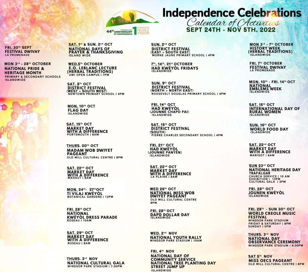 Check out the Calendar of Events for Dominica’s Independence and Creole Season