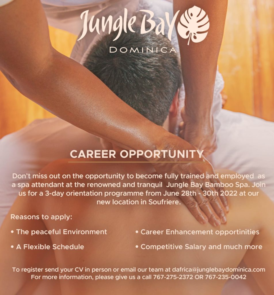 3-day Orientation Programme to become a Spa Attendant to be held at Jungle Bay on June 28th-30th 2022.