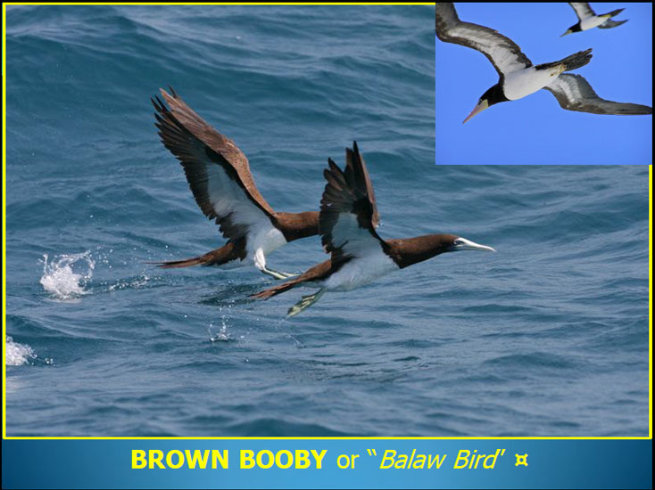 - Guide fishermen to shoals of fish, e.g. in Dominica the Brown Booby is named “Balaw Bird” by fishermen from Layou.