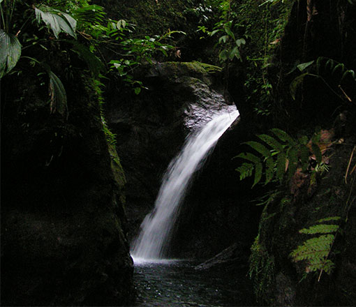 This small fall is reached via a steep but well maintained trail 30 minutes or so from the village of Grand Fond.