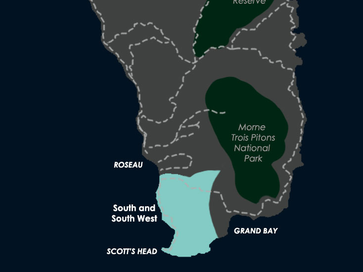 The beautiful south & southwest. Breathtaking scenery, dramatic coastlines and exciting dive sites makes this one of Dominica’s most popular areas.